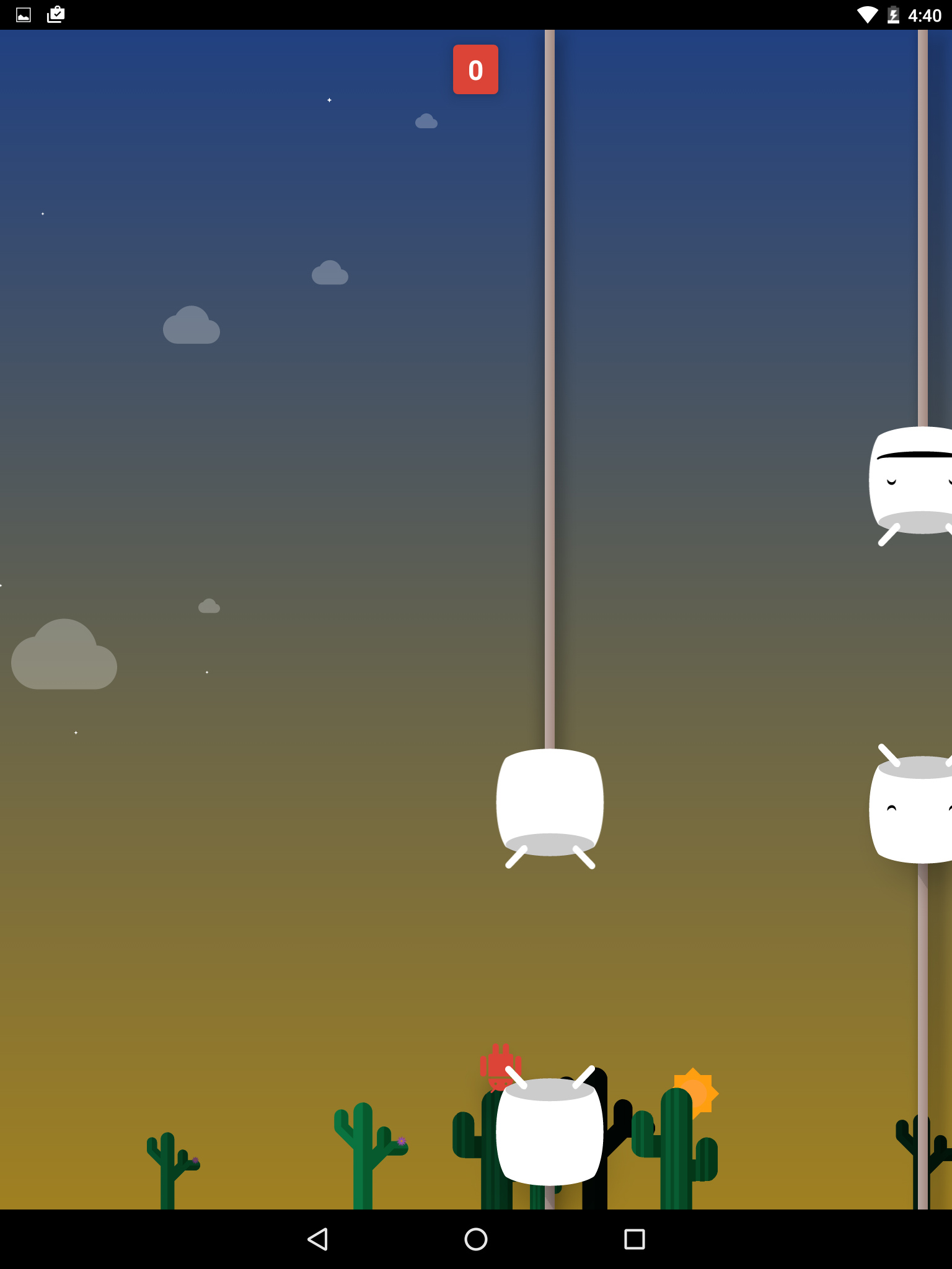 Το Easter Egg του Android 6.0 Marshmallow είναι παρόμοιο. Είναι ένα Android στη μορφή ενός marshmallow και πατώντας το συνεχόμενα ανοίγει πάλι ένα παιχνίδι σαν το Flappy Bird. Σε αντίθεση με το παιχνίδι του Lollipop, μπορείς να βάλεις πολλούς παίχτες να παίξουν.