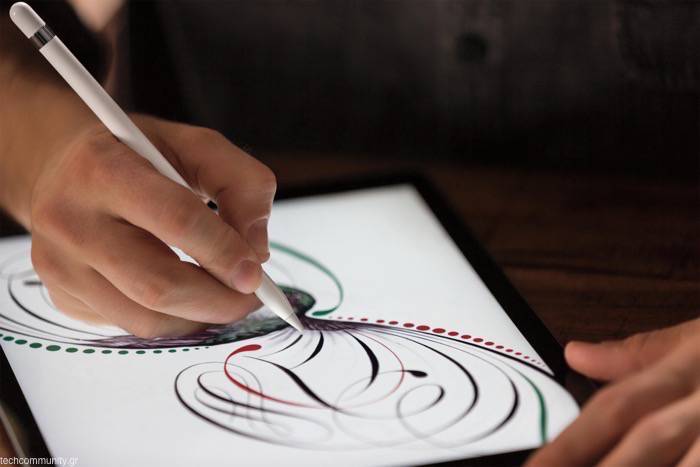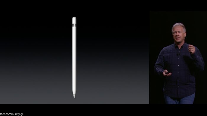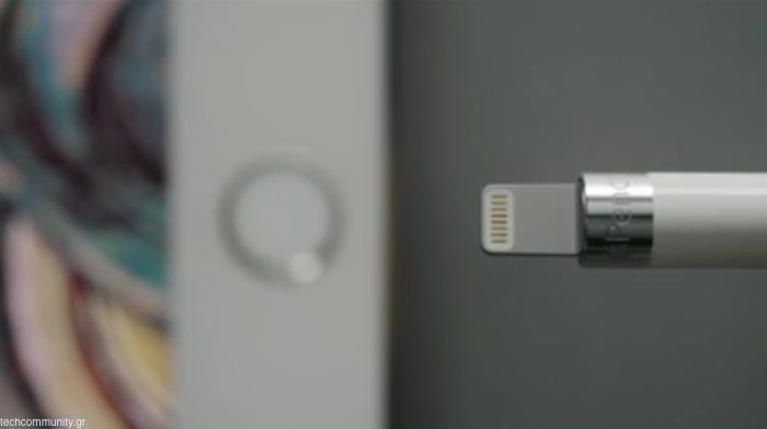 Το δεύτερο είναι το Apple Pencil. Το ‘μολύβι’ της Apple είναι η γραφίδα της για το Pro. Διαθέτει ενσωματωμένους αισθητήρες για να αντιλαμβάνεται τη διαφορά μεταξύ πίεσης, αφής αλλά και γωνίας επαφής με την οθόνη. Έχει αυτονομία για πολλούς μήνες και όταν αδειάσει η χρήστης μπορεί να την επαναφορτίσει χάρη στο Lightning connector που κρύβεται στο πάνω μέρος της γραφίδας.