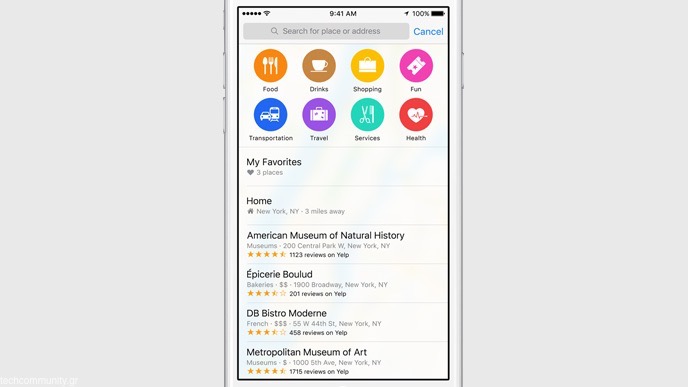 Άλλη εφαρμογή που έχει ενημερωθεί είναι οι χάρτες Apple Maps. Η Apple συνεχίζει να τους βελτιώνει και τώρα έβαλε τα δρομολόγια των μέσων μαζικής μεταφοράς για επιλεγμένες χώρες στις οποίες δεν συμπεριλαμβάνεται η Ελλάδα. Στους Χάρτες επίσης θα εμφανίζονται και κοντινά μαγαζιά και αξιοθέατα.