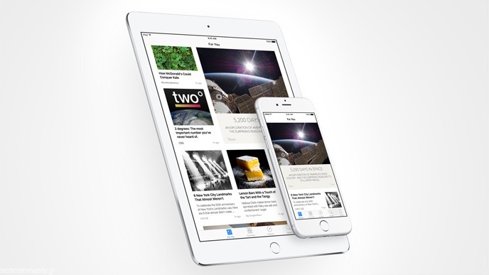 Επίσης, η Apple ενσωμάτωσε τη νέα εφαρμογή «News.» Στο News οι κάτοχοι Apple συσκευών θα μπορούν να διαβάσουν τις τελευταίες ειδήσεις και διάφορες ιστορίες δωρεάν. Η εφαρμογή είναι μινιμαλιστική, δίνει έμφαση στις εικόνες και θα γίνει διαθέσιμη τόσο για iPhone όσο και για iPad με ίδιο γραφικό περιβάλλον. Αρχικά θα είναι διαθέσιμη μόνο σε Ηνωμένες Πολιτείες, Ηνωμένο Βασίλειο και Αυστραλία.