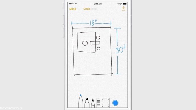 Περνώντας στην εφαρμογή Notes, έχει ενημερωθεί και ο χρήστης πλέον μπορεί να ζωγραφίσει με το δάχτυλό του ή με γραφίδα, μπορεί να δημιουργήσει λίστες με πράγματα που πρέπει να κάνει (checklists) και επίσης μπορεί να τραβήξει μια φωτογραφία και να την εισάγει σε σημείωση.
