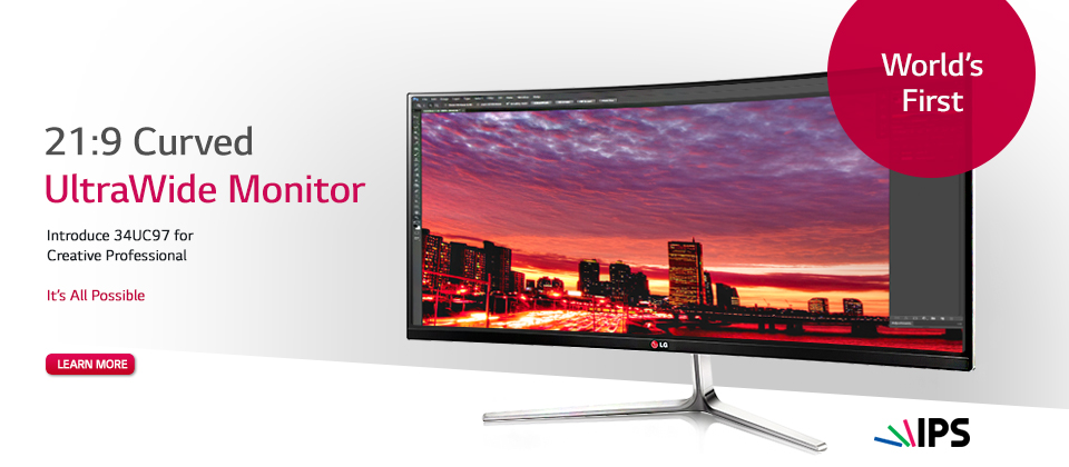 Αθήνα, 04 Μαΐου 2015 – Η LG Electronics (LG) ξεκινά σύντομα τη διάθεση του νέου monitor LG 34UC97 με κυρτή οθόνη UltraWide 21:9, ανάλυσης Quad HD (3440 x 1440) IPS στην ελληνική αγορά. Το εξαιρετικά εντυπωσιακό monitor 34 ιντσών είναι το πρώτο στον κόσμο με κυρτή οθόνη IPS και λόγο διαστάσεων 21:9, ενώ προσφέρει ανώτερη ποιότητα εικόνας και απόδοση χρωμάτων, καθώς και πολλαπλές επιλογές συνδεσιμότητας, καλύπτοντας πλήρως τις επαγγελματικές ανάγκες, αλλά και τις ανάγκες ψυχαγωγίας του κάθε χρήστη.