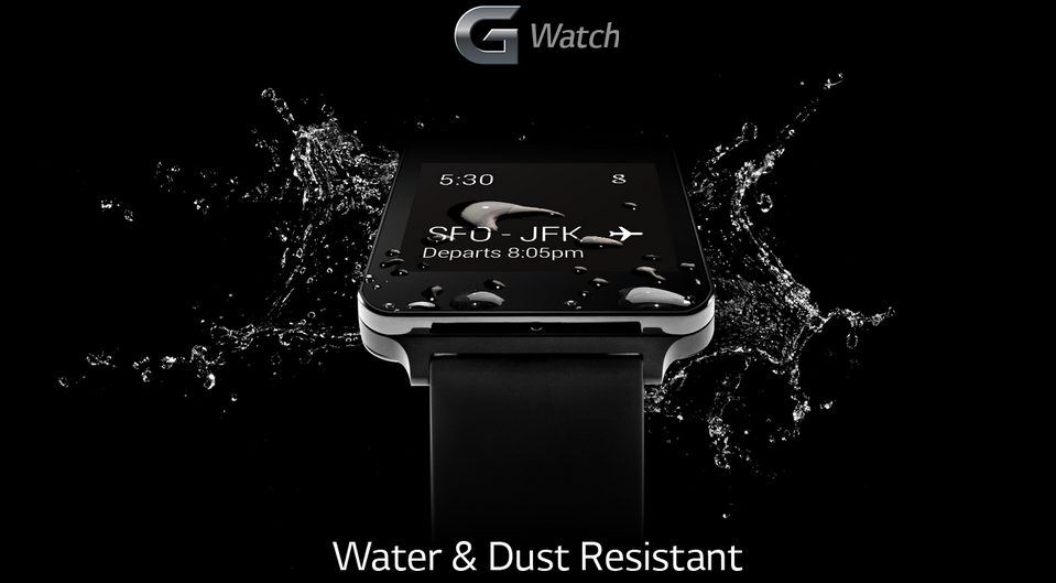 Σύμφωνα με τις τελευταίες αποκαλύψεις της LG, το LG G Watch smartwatch θα είναι ανθεκτικό στο νερό, όπως σχεδόν όλα τα smartwatches (αν όχι όλα), και η οθόνη του θα παραμένει πάντα ανοιχτή ώστε μόλις ο χρήστης το κοιτάζει να βλέπει χρήσιμες πληροφορίες με τη βοήθεια του Google Now. Θα κυκλοφορήσει επίσης σε ένα νέο χρώμα, το οποίο είναι λευκό (λουράκι) με χρυσές λεπτομέρειες κάτω από τη μαύρη οθόνη και στο λουράκι.