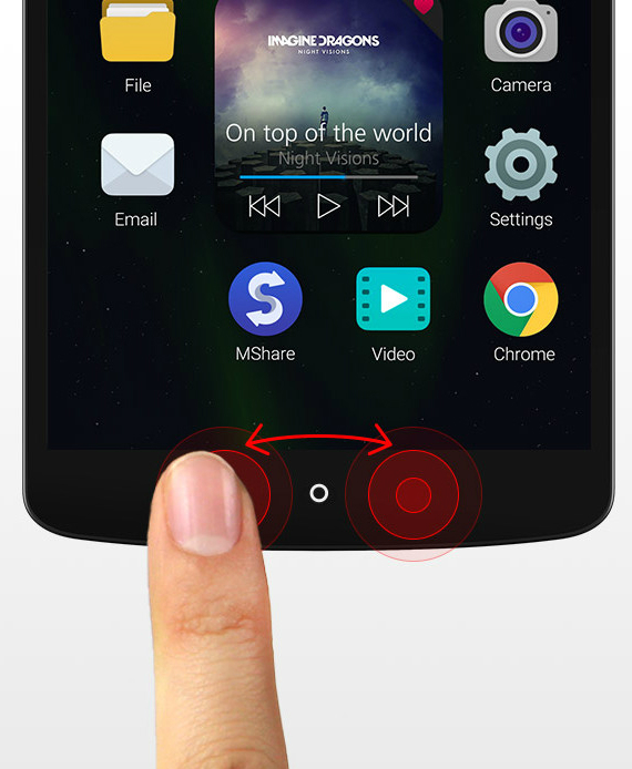 Όσον αφορά το ιδιαίτερο χαρακτηριστικό της συσκευής που είναι η έλλειψη φυσικών κουμπιών, το λογισμικό και οι κινήσεις του χεριού του χρήστη δίνουν την λύση σε αυτό. Καταρχάς το λογισμικό αντιλαμβάνεται το σημείο που ακουμπά το δάχτυλο και προχωρά σε αντίστοιχες λειτουργίες, όπως για παράδειγμα, σε περίπτωση κλήσης, το παράθυρο της κλήσης εμφανίζεται σε σημείο κοντά στο δάχτυλο. Επίσης, το ένα και μοναδικό capacitive κουμπί κάτω από την οθόνη της συσκευής, δεν λειτουργεί απλά ως home button, αλλά διεκπεραιώνει μέσω χειρονομιών τις υπόλοιπες λειτουργίες όπως η ένταση του ήχου.
