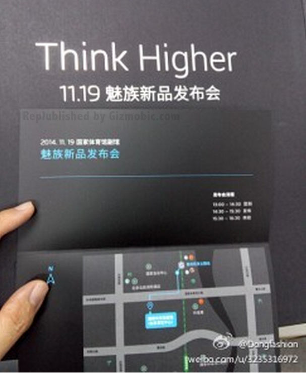 Η Meizu θα παρουσιάσει επίσημα το Meizu MX4 Pro και για αυτό το λόγο έστειλε προσκλήσεις στο Τύπο για την εκδήλωση που θα πραγματοποιηθεί στις 19 Νοεμβρίου στο Vice Pavillion του Beijing National Stadium. Το κινητό ξέρουμε μέχρι στιγμής ότι διαθέτει οθόνη 5,5 ιντσών ανάλυσης 2560 x 1536 pixels, οκταπύρηνο επεξεργαστή Samsung Exynos Octa στα 2.0GHz, 3GB μνήμη RAM, εμπρόσθια κάμερα 5MP και κύρια κάμερα 19MP με δυνατότητα καταγραφής 4K βίντεο, και 16GB εσωτερική μνήμη.