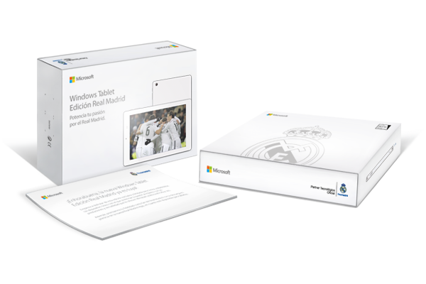 Η Microsoft σαν επίσημη συνεργάτιδα της Real Madrid ανακοίνωσε το ‘Windows Tablet Real Madrid Edition’ (ή το ‘Windows Tablet Edición Real Madrid’, στα Ισπανικά αν προτιμάτε) το οποίο προσφέρει αξιόλογα τεχνικά χαρακτηριστικά και είναι σχεδιασμένο αποκλειστικά για τους φιλάθλους της ομάδας. Συγκεκριμένα ο χρήστης προτού παραγγείλει το tablet μπορεί να προσαρμόσει το σχέδιο στο πίσω καπάκι με διάφορες εικόνες της ομάδας ή του σταδίου, μπορεί να προσθέσει ένα από τα συνθήματα των fans και μπορεί να προσθέσει το όνομά του στο πίσω καπάκι.