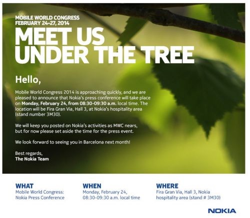 Το Nokia Android smartphone θα ανακοινωθεί σε μόλις 4 ημέρες από τώρα – 24 Φεβρουαρίου 2014. Στην αρχή της εμπορικής έκθεσης MWC 2014. Η αλήθεια είναι πως δεν γνωρίζουμε πότε θα βγει στην αγορά και σε ποιες χώρες. Σίγουρα θα το μάθουμε σε λίγες ημέρες, αλλά για τώρα δεν έχουμε κάτι συγκεκριμένο.
