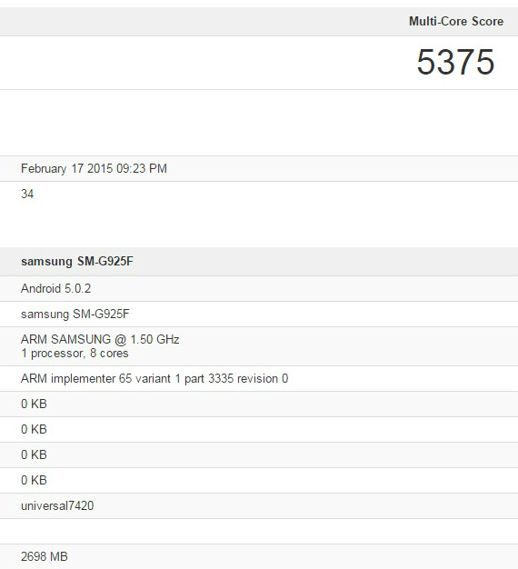 Έτσι, το Samsung Galaxy S6 Edge σκόραρε 1.495 πόντους στο single-core και είναι πρώτο στην σχετική λίστα, αφήνοντας πίσω ακόμη και το iPad Air 2, ενώ στο multi-core test σκόραρε 5.375 πόντους. Με τον νέο 14nm Exynos επεξεργαστή, 3GB μνήμη RAM και Android 5.0.2 σίγουρα δεν θα αφήσει κανέναν παραπονεμένο σχετικά με την ταχύτητά του.
