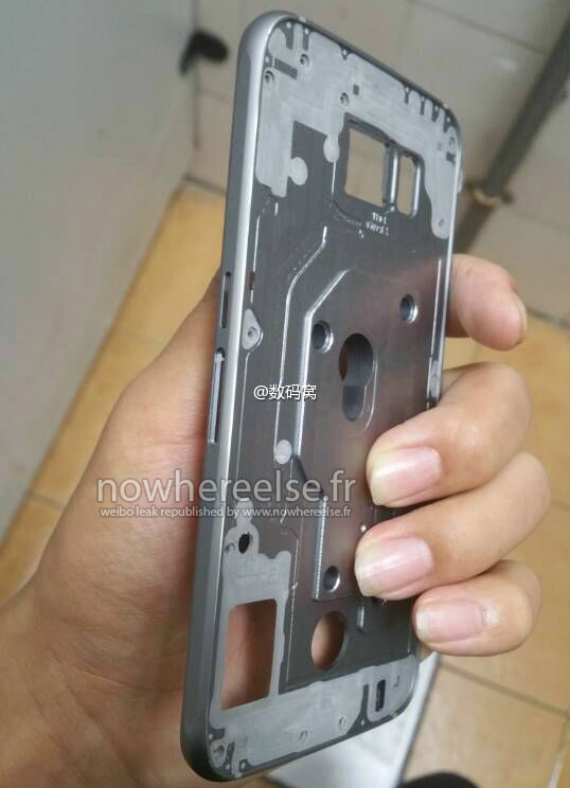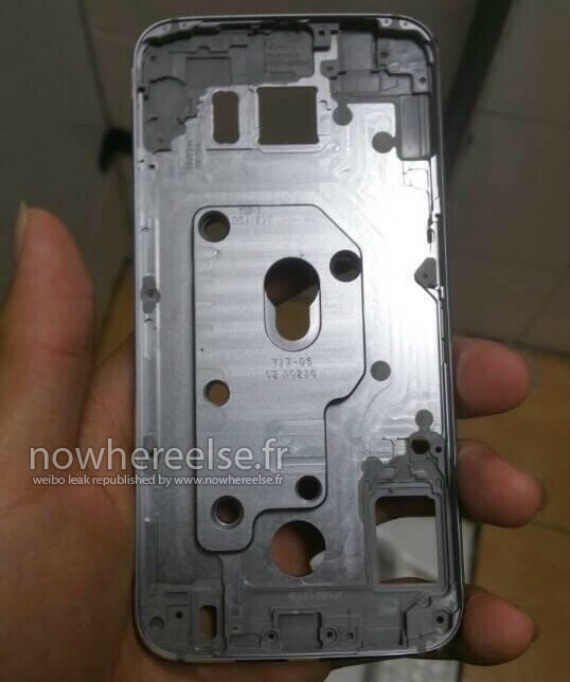 Έπειτα, το γαλλικό NowhereElse, που γενικά έχει αποδειχτεί αξιόπιστο για τις διαρροές του, μας δείχνει σε φωτογραφίες το υποτιθέμενο μεταλλικό σασί του Galaxy S6. Αν όλες αυτές οι φωτογραφίες που θα δείτε παρακάτω είναι αληθινές, τότε μπορούμε να μιλάμε για μια λεπτή μεταλλική συσκευή, που για αυτόν τον λόγο έχει την υποδοχή της κάρτας SIM στα πλάγια. Τα ηχεία είναι τοποθετημένα στην κάτω πλευρά μαζί με τη θύρα USB, ενώ όπως παρατηρούμε η νέα συσκευή δεν θα διαθέτει αποσπώμενη μπαταρία. Επίσης, επιβεβαιώνεται για μια ακόμη φορά, ότι το φλας και ο αισθητήρας καρδιακών παλμών θα είναι τοποθετημένα δίπλα στην κάμερα.