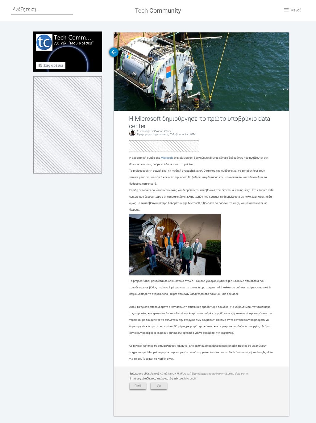 Τέλος, χάρη στη παραπάνω ανακοίνωση βρήκα την ευκαιρία να σας αποκαλύψω το μέλλον του Tech Community. Στις παραπάνω εικόνες βλέπετε πως θα μοιάζει η αρχική σελίδα και η σελίδα ενός άρθρου στο νέο θέμα του blog που αναπτύσσω από το μηδέν. Το design στις εικόνες δεν είναι το τελικό και ενδέχεται να αλλάξει στο μέλλον ωστόσο μπορείτε να πάρετε μια ιδέα για το πως θα μοιάζει. Παρότι η τωρινή εμφάνιση είναι ξεχωριστή και παρέχει ευκολίες που κανένα άλλο ειδησιογραφικό site στην Ελλάδα δεν έχει, ένα μικρό ποσοστό χρηστών δεν μένει ικανοποιημένο και για αυτό θα υιοθετήσουμε μια πιο κλασική μορφή blog κρατώντας τα σημαντικότερα στοιχεία. Πιστεύουμε ότι θα το λατρέψουν όλοι.