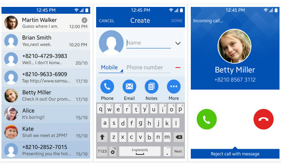 Όπως βλέπουμε από τα screenshots, το νέο γραφικό περιβάλλον του Tizen για κινητά ‘δανείζεται’ αρκετά στοιχεία από του TouchWiz για τα Galaxy και το κύριο χρώμα του έγινε το μπλε. Σε γενικές γραμμές είναι λιτό και ένας απλός χρήστης δεν θα το ξεχώριζε από το Android.